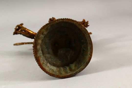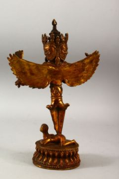 A TIBETAN GILT BRONZE MULTI ARMED DEITY FIGURE, 28cm high.