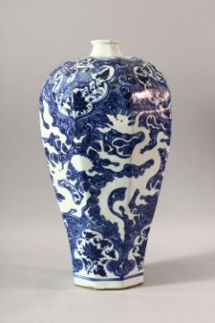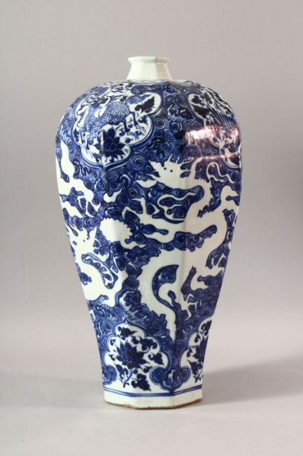 A CHINESE BLUE AND WHITE PORCELAIN MEIPING VASE, the body decorated with kylin, phoenix and dragon, 45cm high.