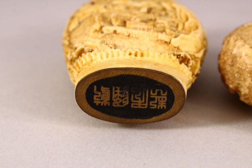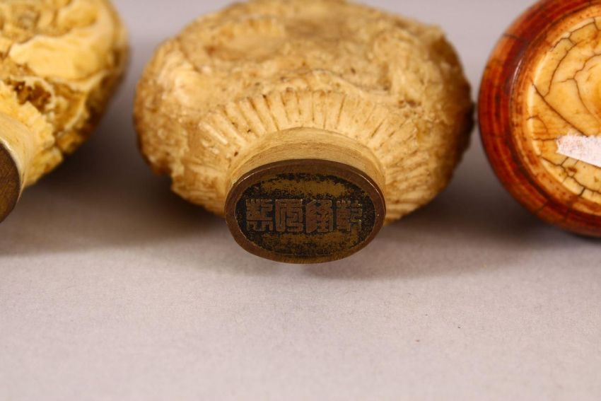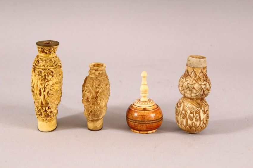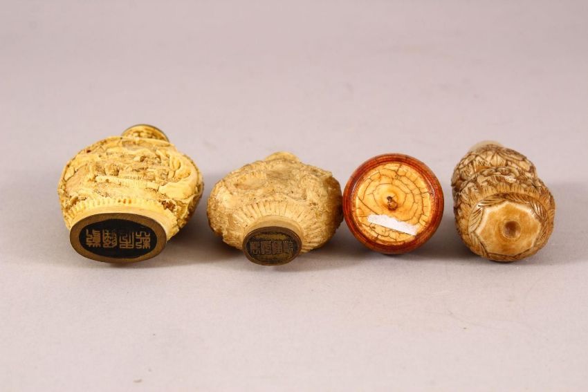 A MIXED LOT OF 19TH CENTURY CHINESE CARVED IVORY SNUFF BOTTLES, of varying style and size