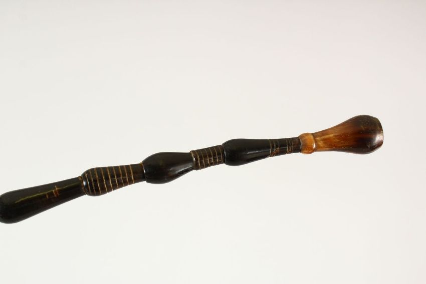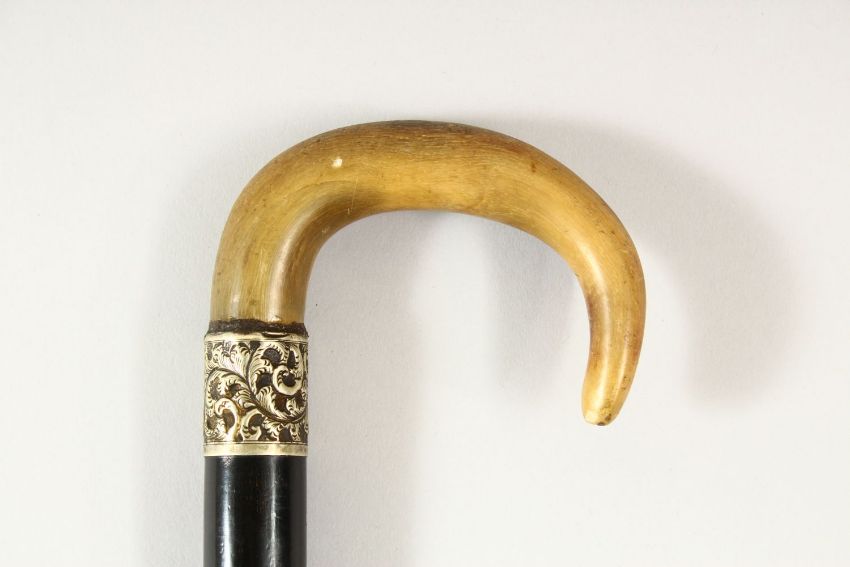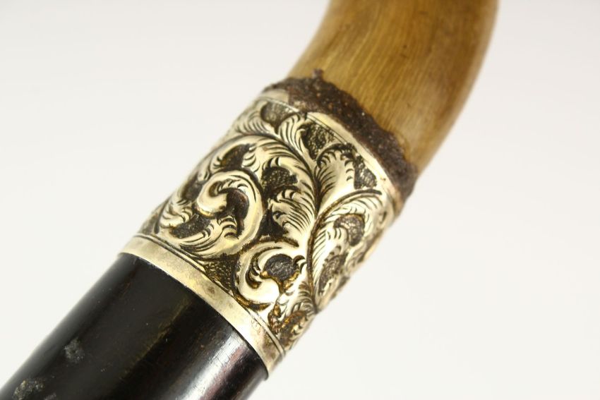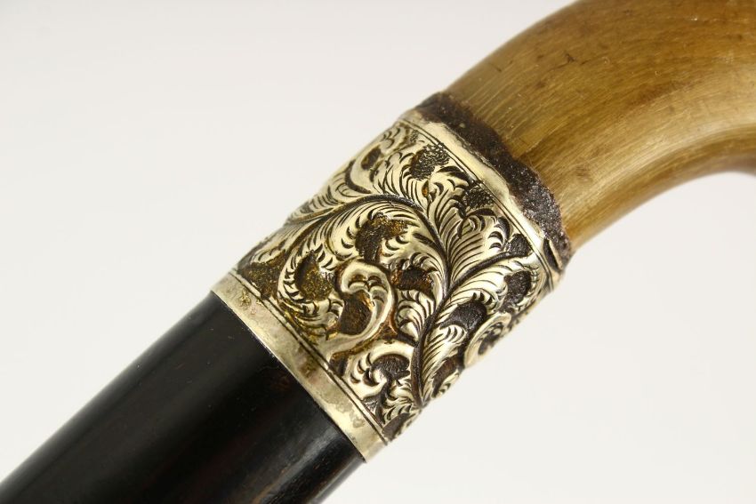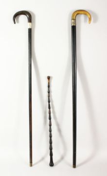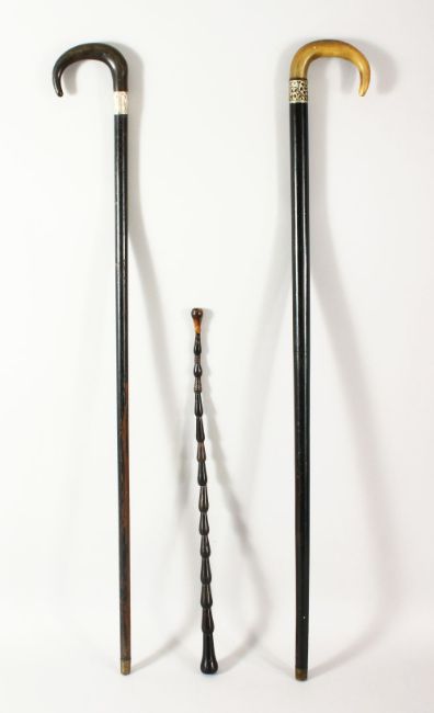A LOT OF THREE HORN POSS RHINO WALKING STICKS - two larger with carved horn handles, one smaller carved all horn stick.