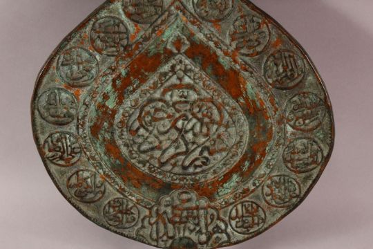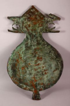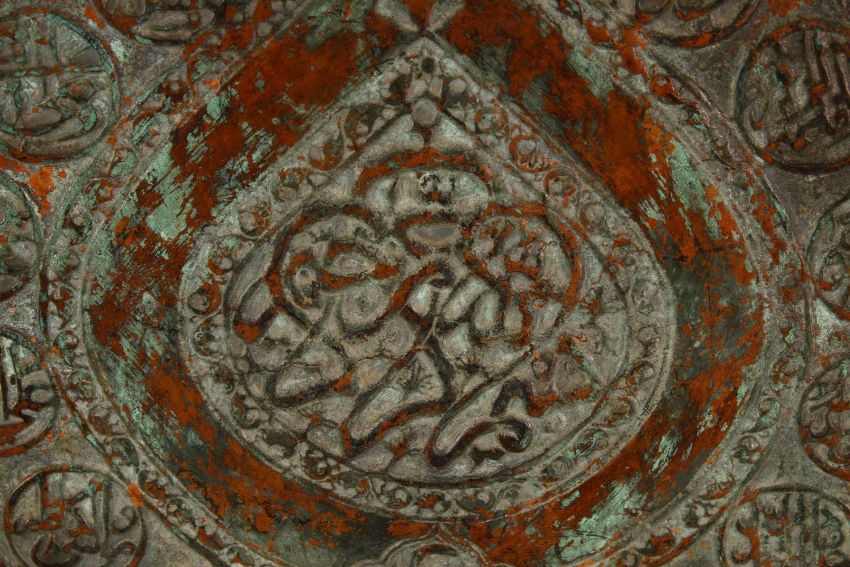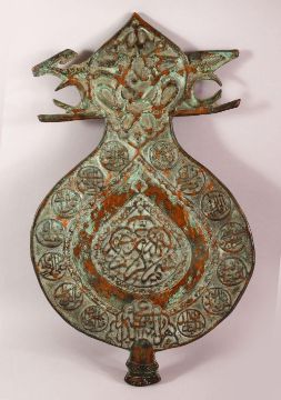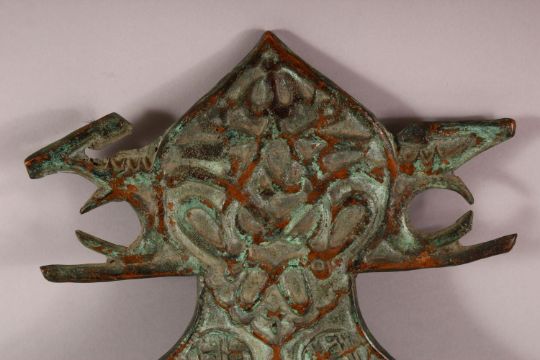 A LARGE ISLAMIC BRONZE CALLIGRAPHIC ALAM, 53.5cm high.