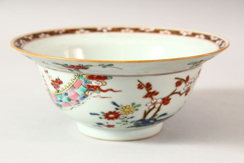 A GOOD CHINESE FAMILLE ROSE ENAMELLED BOWL, decorated with flowers, 18cm diameter.