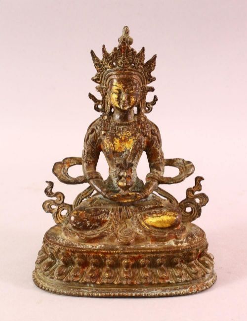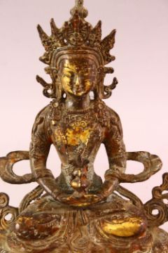 A THAI BRONZE BUDDHA, with traces of gilt work, 22cm high.