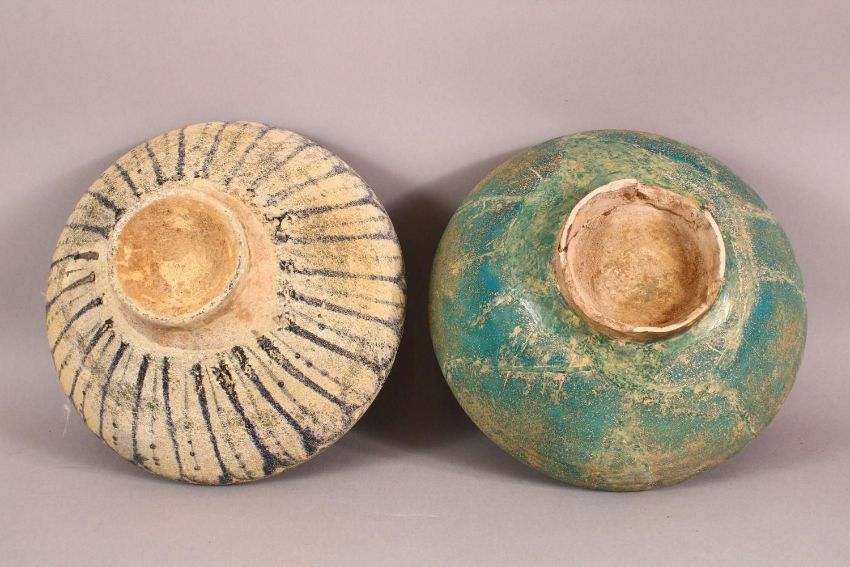 TWO 12TH/13TH CENTURY PERSIAN SELJUK POTTERY BOWLS, both 20cm diameter.