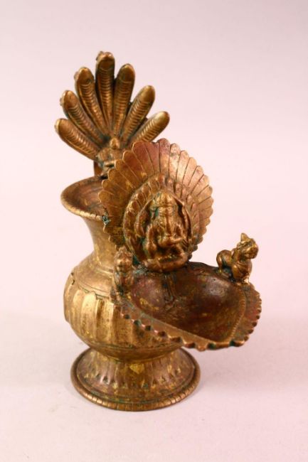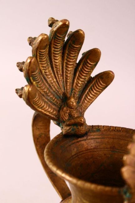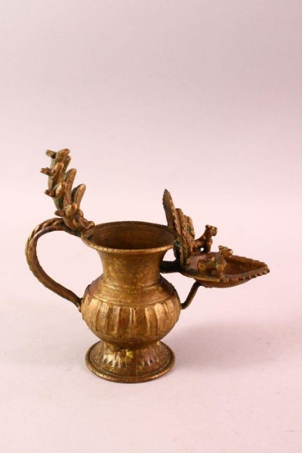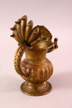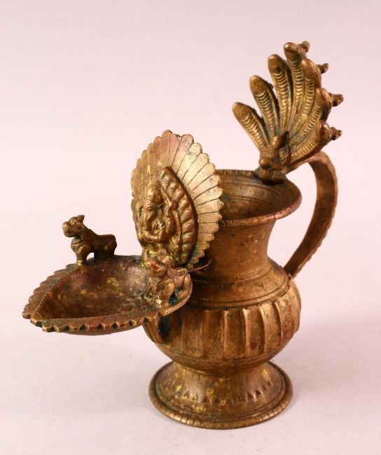 AN INDIAN BRONZE OIL POURER VESSEL, 18cm