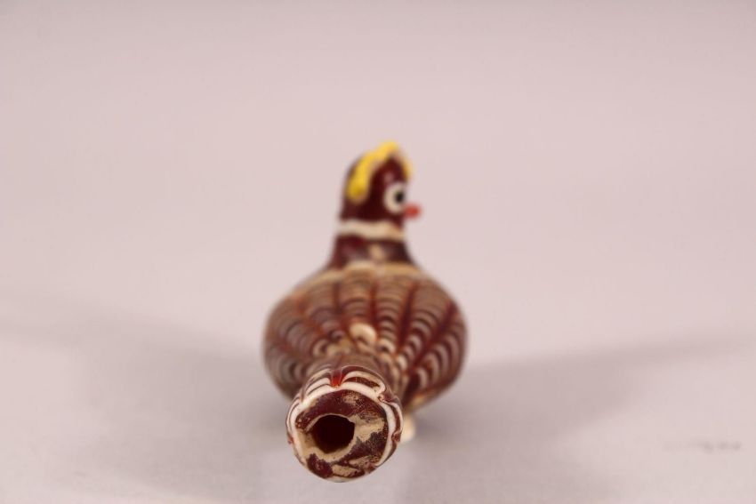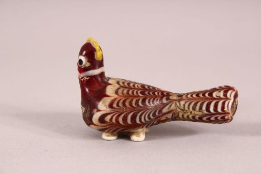 AN EARLY ISLAMIC MARVERED GLASS MODEL OF A BIRD, 7cm long.