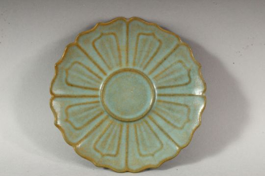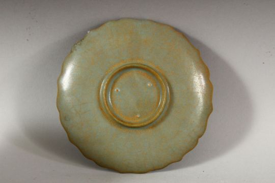 A CHINESE CELADON TEA CUP AND SAUCER, the cup 8.5cm diameter, the saucer 13.5cm diameter.