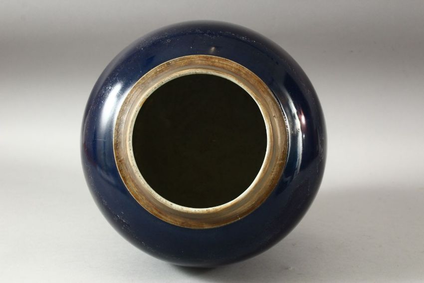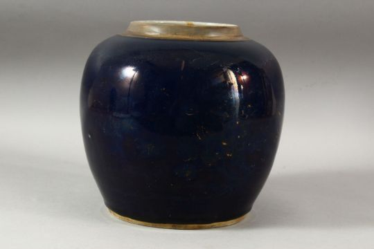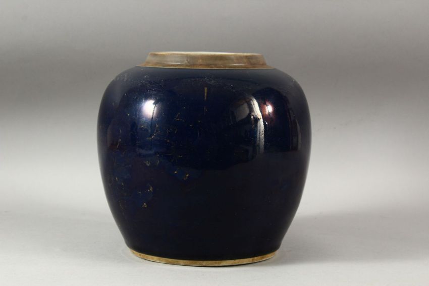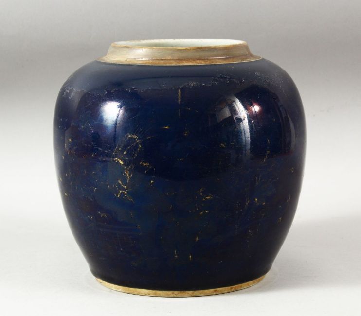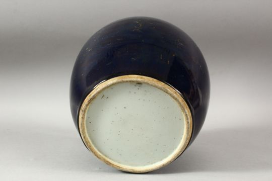 A CHINESE BLUE GROUND PORCELAIN JAR, the body with traces of gilt decoration, 21.5cm high.