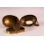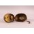 A 19TH CENTURY INDIAN BRASS LADIES FRUIT FORMED MAKEUP BOX - the interior with a mirror and compartment, with a screw locking finial and chain. 11,5cm