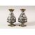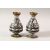 A PAIR OF ISLAMIC BLACK GROUND ENAMEL VASES, each decorated with a black ground and white raised decor of flora, 12cm