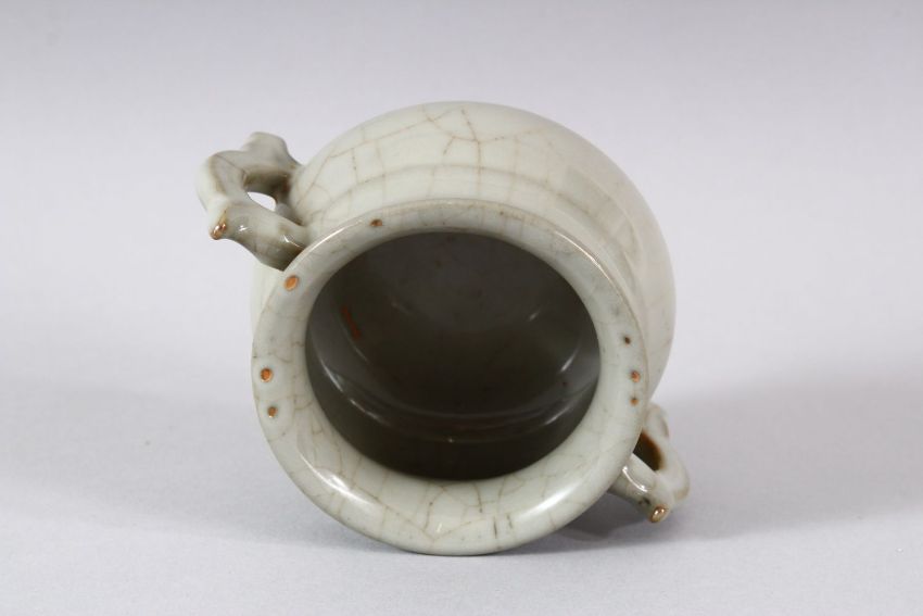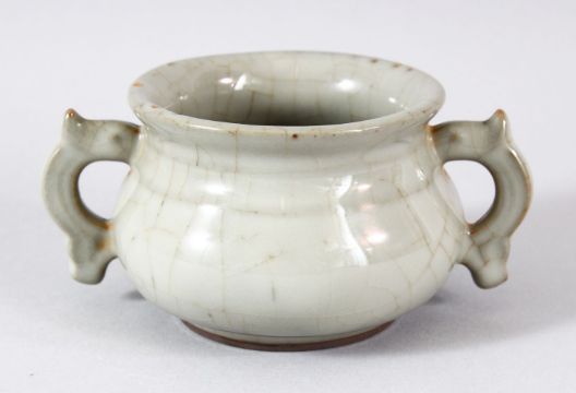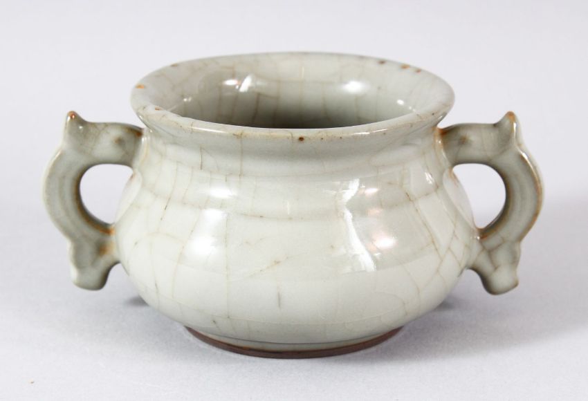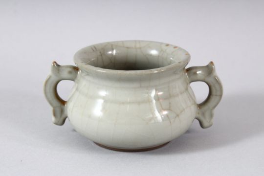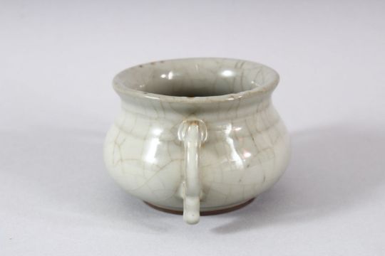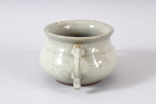 A SMALL CHINESE GE TYPE TWIN HANDLE CENSER, 12cm diameter.