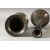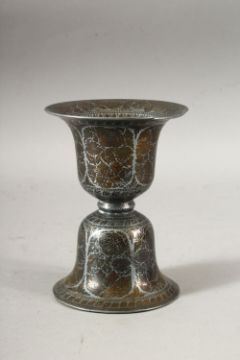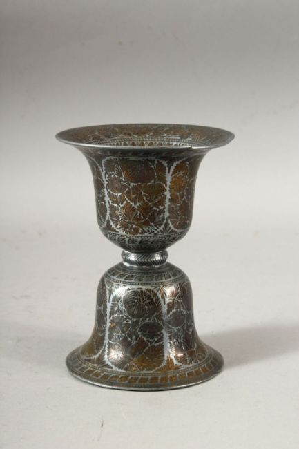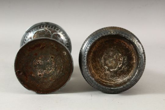 A 19TH CENTURY INDIAN BIDRI SPITOON, 14cm high, together with a bidri vase, 23cm high.