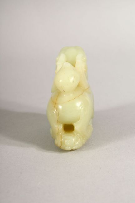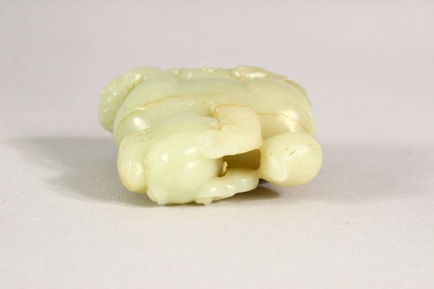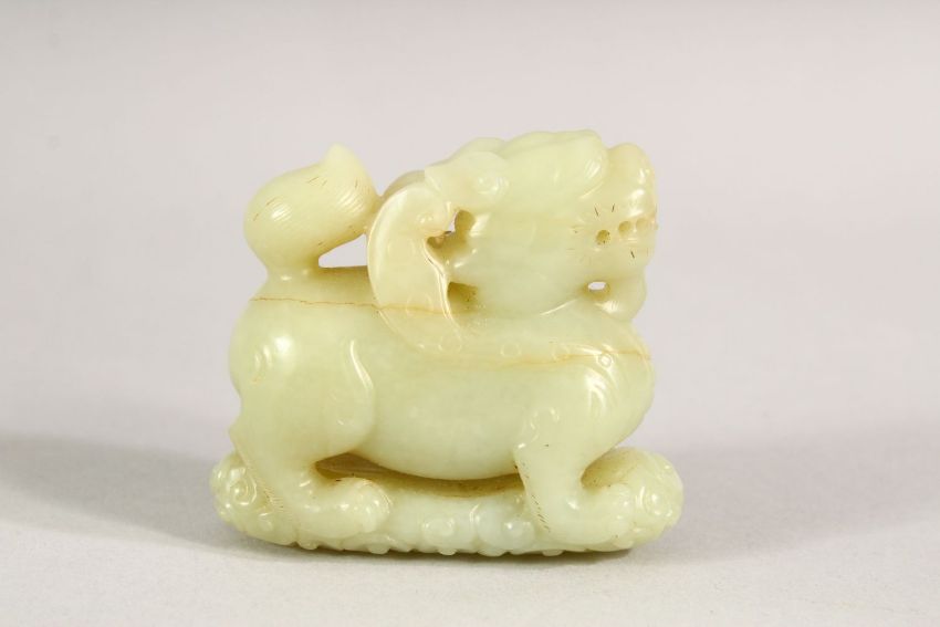 A CHINESE CARVED JADE LION FIGURE, 5cm high.