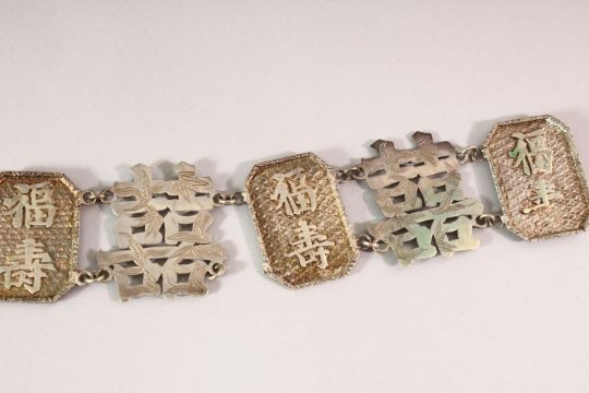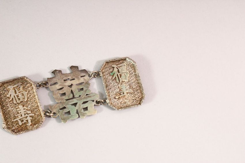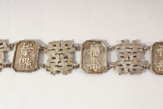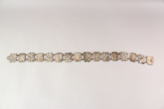 A CHINESE SILVER BELT, circa 1900, marked 'WC', the overall belt measuring approx. 63cm long.