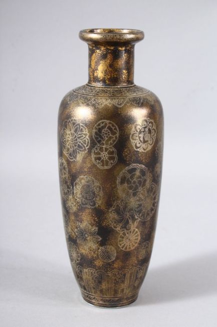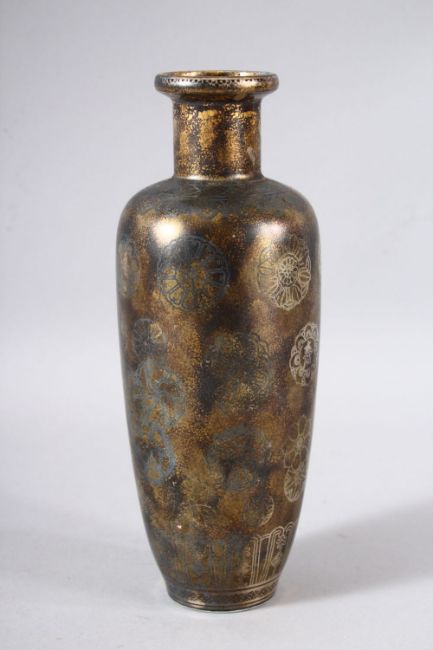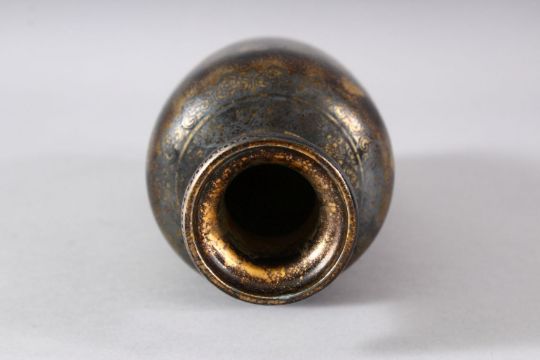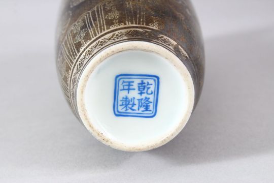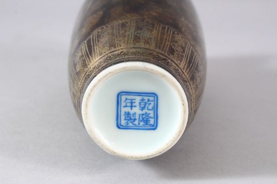 A PAIR OF UNUSUAL CHINESE METALLIC GLAZE PORCELAIN VASES, the bases with blue four character mark, 20cm high.