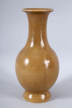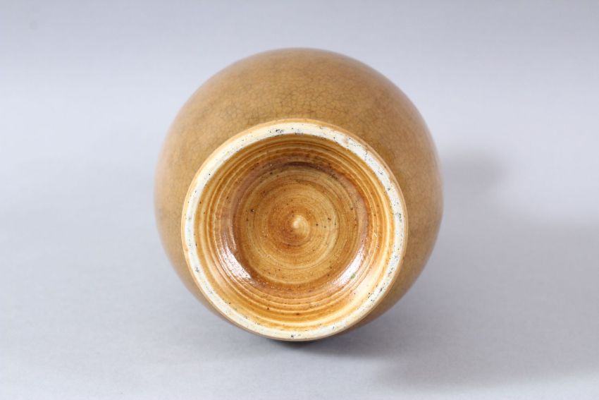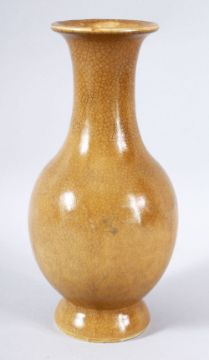 A CHINESE CRACKLE GLAZE POTTERY VASE, 21cm high.