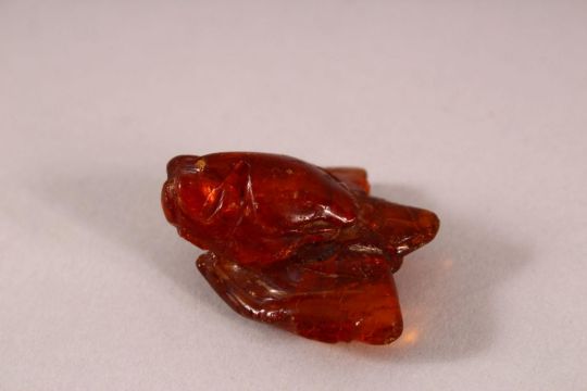 AN EARLY CHINESE AMBER CARVING OF A MOTH, 4cm.