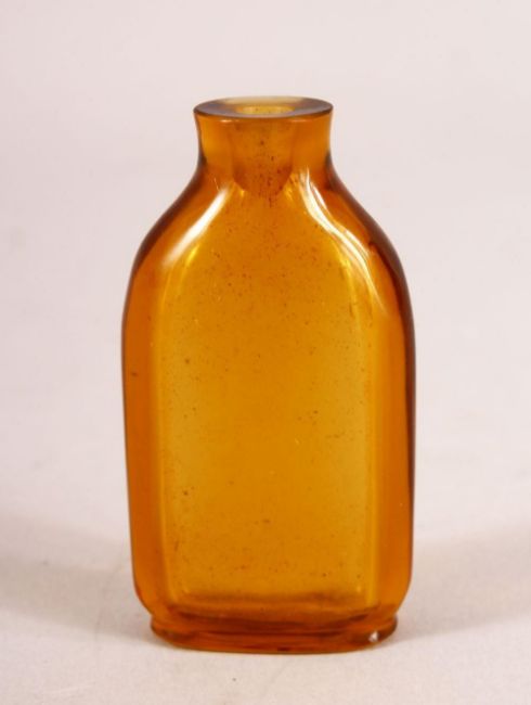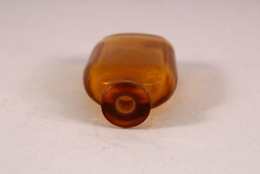 A CHINESE AMBER GLASS SNUFF BOTTLE - 7cm
