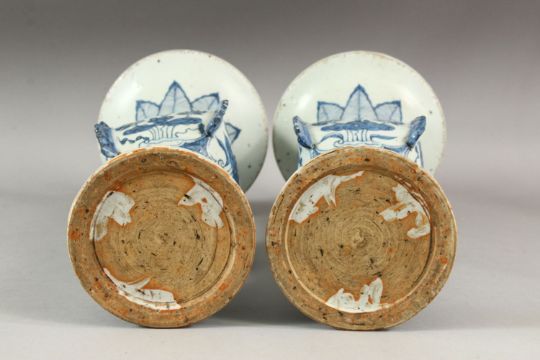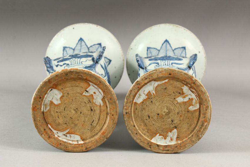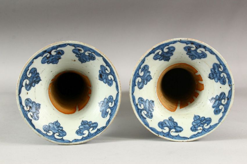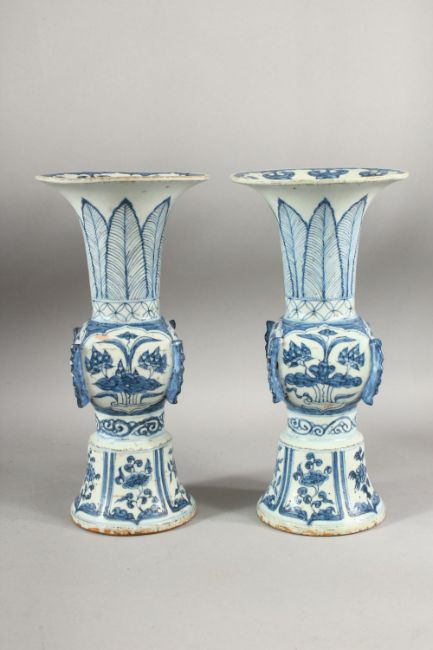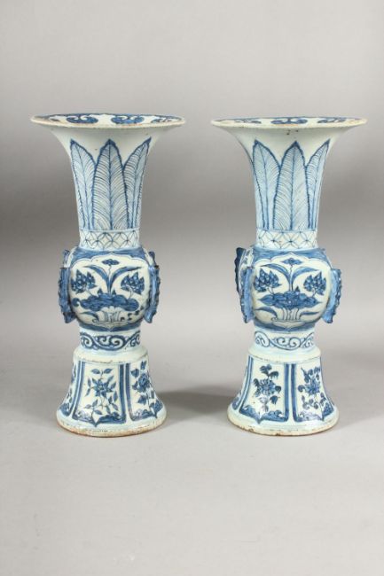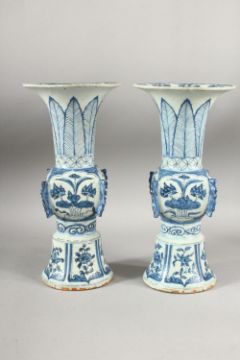 A PAIR OF CHINESE PORCELAIN GU SHAPED VASES, 31cm high.