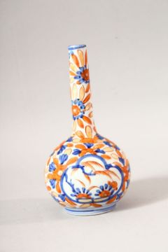 A SMALL IMARI STYLE PORCELAIN BOTTLE VASE, 16cm high.