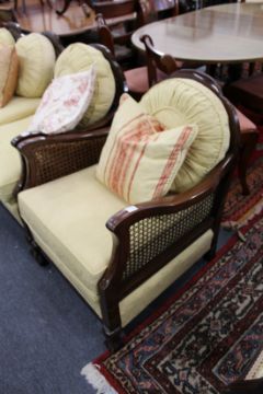 A mahogany framed three piece Bergere suite.