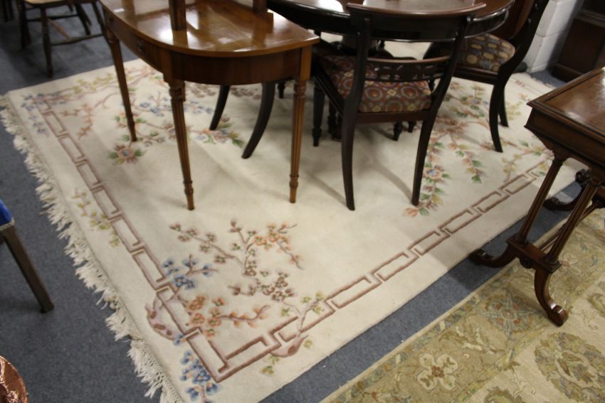 A large cream ground Chinese carpet.