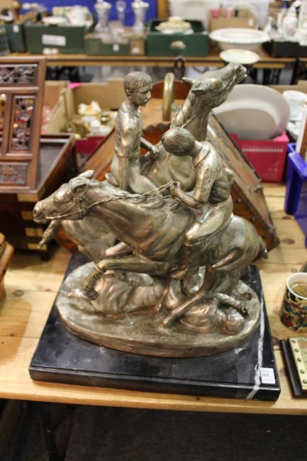 After Frederick Remington, Polo, a good cast metal group on a marble base.