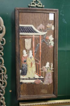 A pair of Chinese hardstone inlaid plaques.