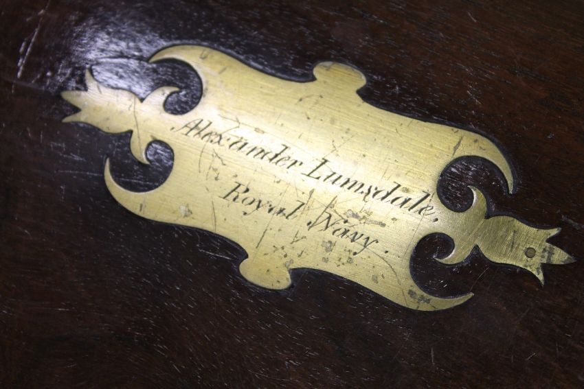 A good 19th century brass bound mahogany writing slope engraved Alexander Lumsdale, Royal Navy.