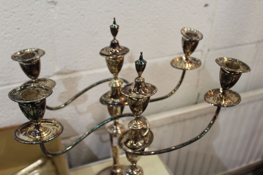 A pair of plated candelabra.