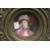 A pair of continental porcelain portrait dishes with impressed brass mounts.