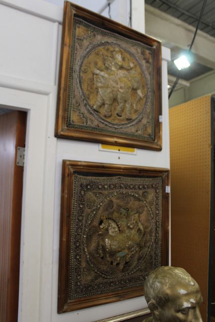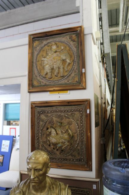 A pair of Thai metal thread embroidered pictures.