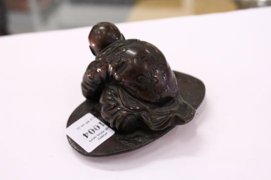 A small Chinese bronze kneeling figure.