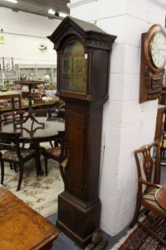 A 19th century oak long case clock, the arched brass dial signed William Warin, Thirsk.
