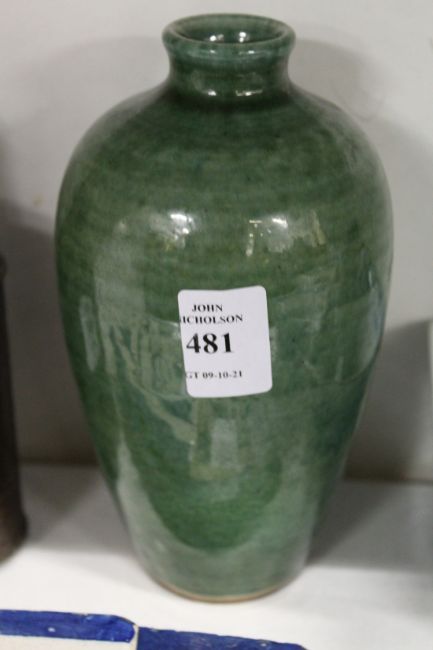 A Chinese green ground pottery vase.
