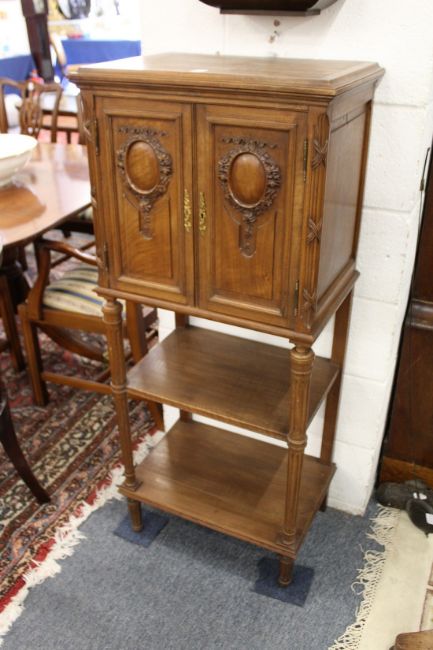 A French walnut two door music cabinet.