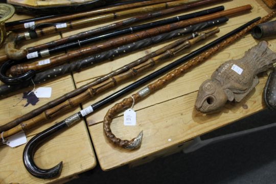 A silver mounted walking stick.