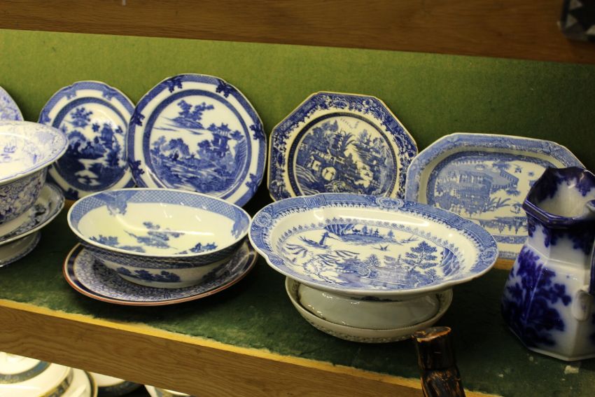 A good collection of 19th century and later blue and white porcelain to include plates, jugs, bowls etc.