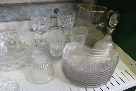 A Daum, Nancy engraved and gilt decorated jug (AF) together with other glassware.