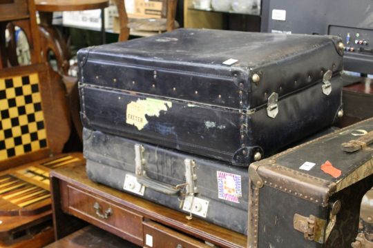 A wardrobe trunk and two other cases.