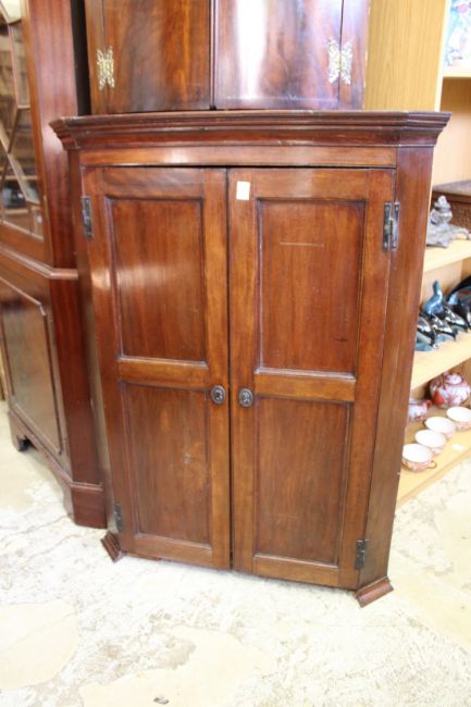 A 19th century mahogany two door hanging corner cabinet.