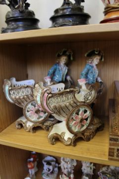 A pair of continental jardinieres modelled as men pulling a chariot.