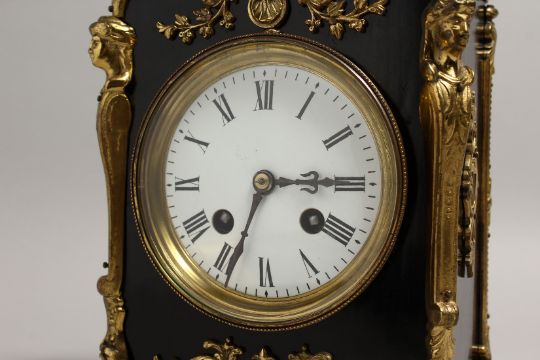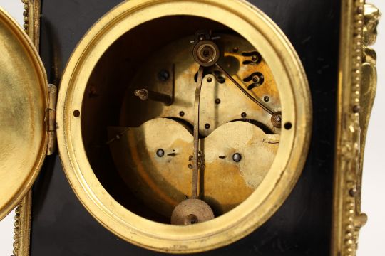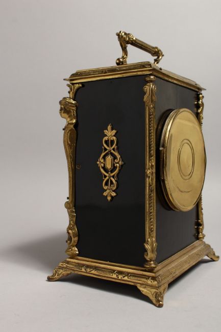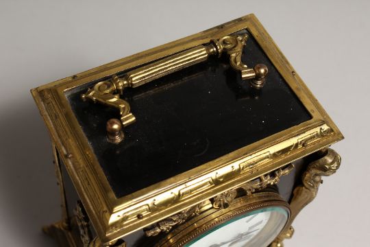 A FRENCH "PENDULE VOAGE" MANTLE CLOCK by JAPY FRERES. C 1880 with 'tick tack' escapement, strikes on the our on bell.