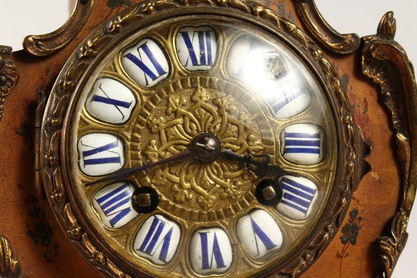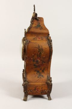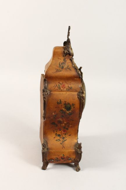 A GOOD FRENCH CLOCK in a painted case with figures and flowers with ormolu mounts, blue and white Roman numerals