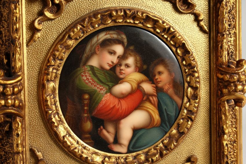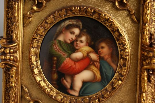A GOOD GERMAN PORCELAIN CIRCULAR PLAQUE, Madonna and child