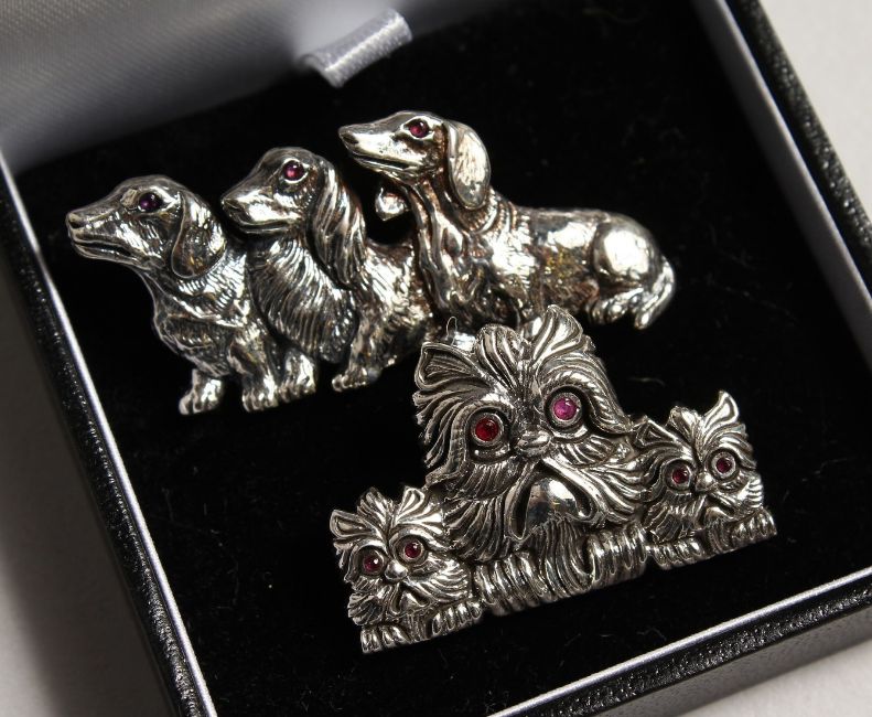 TWO SILVER DOG BRACELETS