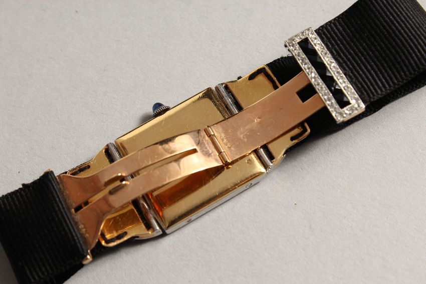 A SUPERB 1920'S CARTIER ART DECO DIAMOND AND SAPPHIRE COCKTAIL WATCH