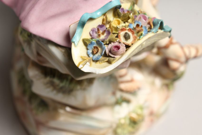 A SUPERB 19TH CENTURY MEISSEN FIGURE OF LOVERS seated on a rock, a lamb by her side, on an oval rocky base.