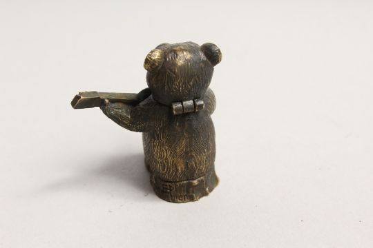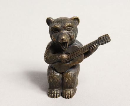 A NOVELTY BRASS BEAR PLAYING A GUITAR VESTA
