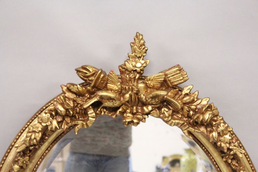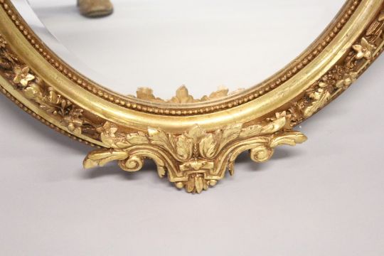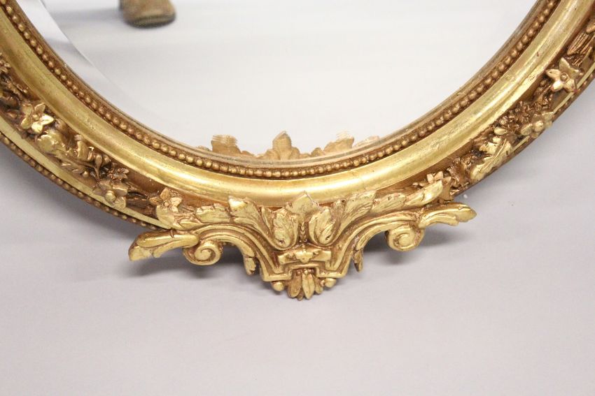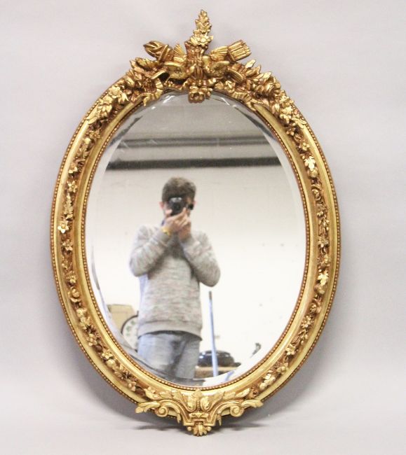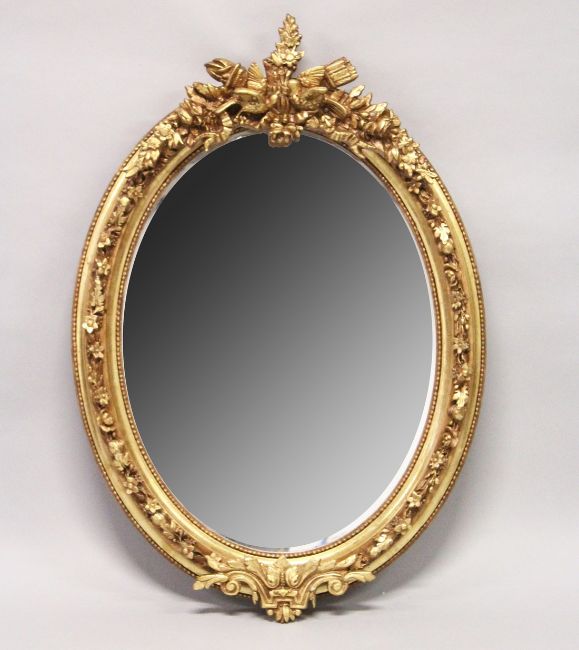 A DECORATIVE GILT FRAMED OVAL WALL MIRROR